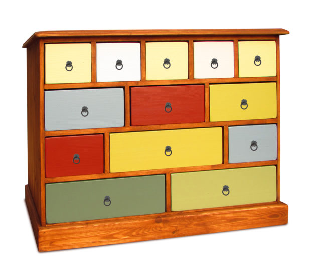 Класичне виконання комода-кілька широких висувних ящиків, розташованих один над одним. Традиційно їх 4, але кількість може варіюватися від 2 до 5 і більше. У багатьох моделях замість широких верхніх ящиків роблять 2-3 вужчих. Є Комоди, де всі ящики мають різну ширину, в деяких внутрішній простір ящиків розділяється на кілька частин перегородками для зручного зберігання ременів, краваток, косметики. Якщо у вас є речі, які потребують особливої охорони від сторонніх очей, то можна доглянути комод, де в одній із секцій буде відділення під замком.