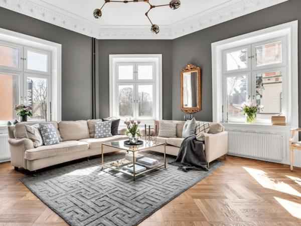 Для оздоблення стін підходить декоративна штукатурка або фарбування. Якщо вибираєте шпалери, то або однотонні або з простим геометричним орнаментом. Оптимальне рішення-обшивка стін панелями і декорування стін за допомогою молдингів, які досить поширені в неокласичних інтер’єрах.