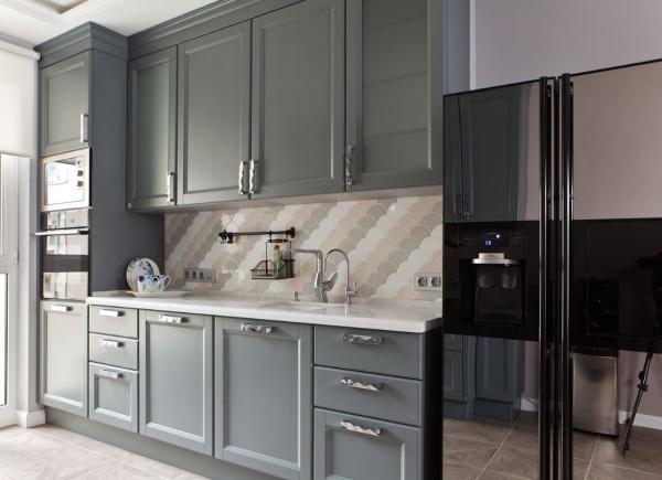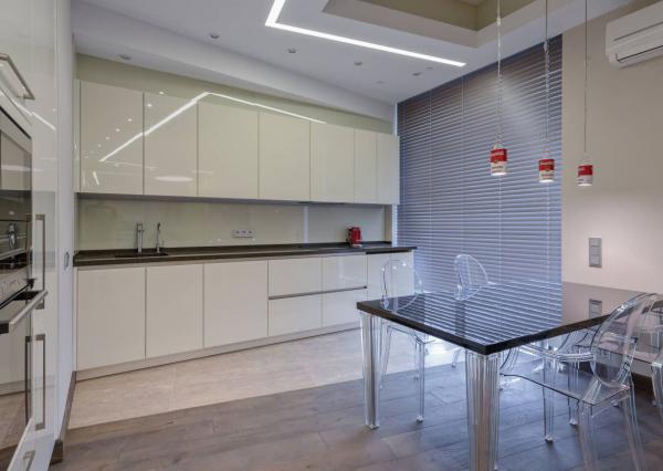 Щоб візуально розширити вузьку кухню варто скористатися П – І Г-образної розстановкою. А ось острівна і дворядна в даному випадку під забороною.